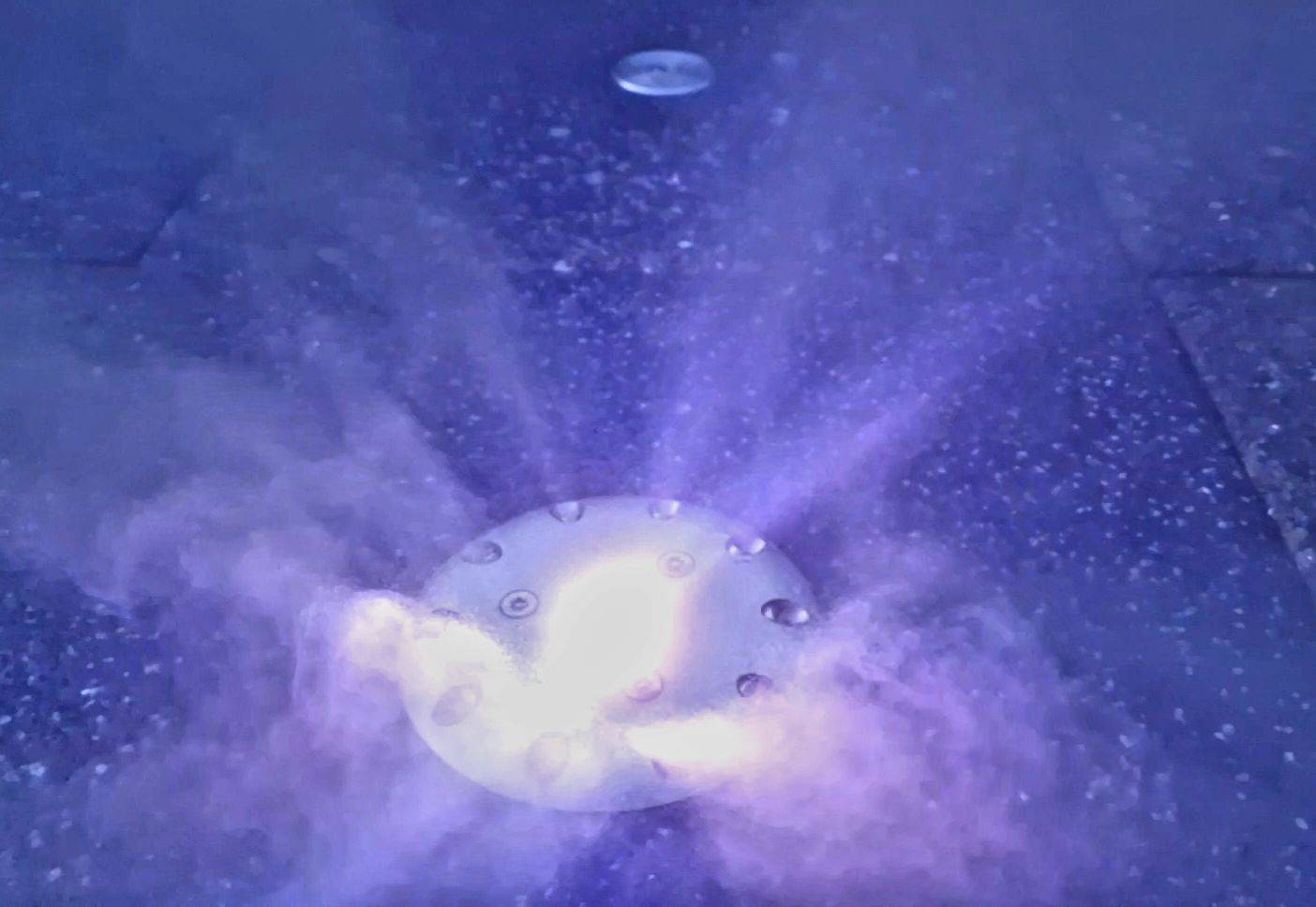 CULA kühlt nicht nur effektiv – es inszeniert Räume. Durch die Kombination von ultrafeinem Wassernebel mit RGB-Lichteffekten entsteht ein beinahe magischer visueller Effekt, der Außenbereiche in eine neue Erlebniswelt verwandelt. Besonders bei Dämmerung und Nacht entwickelt der sanfte Nebel in Verbindung mit Licht eine ästhetische Wirkung, die zum Verweilen, Staunen und Wohlfühlen einlädt.